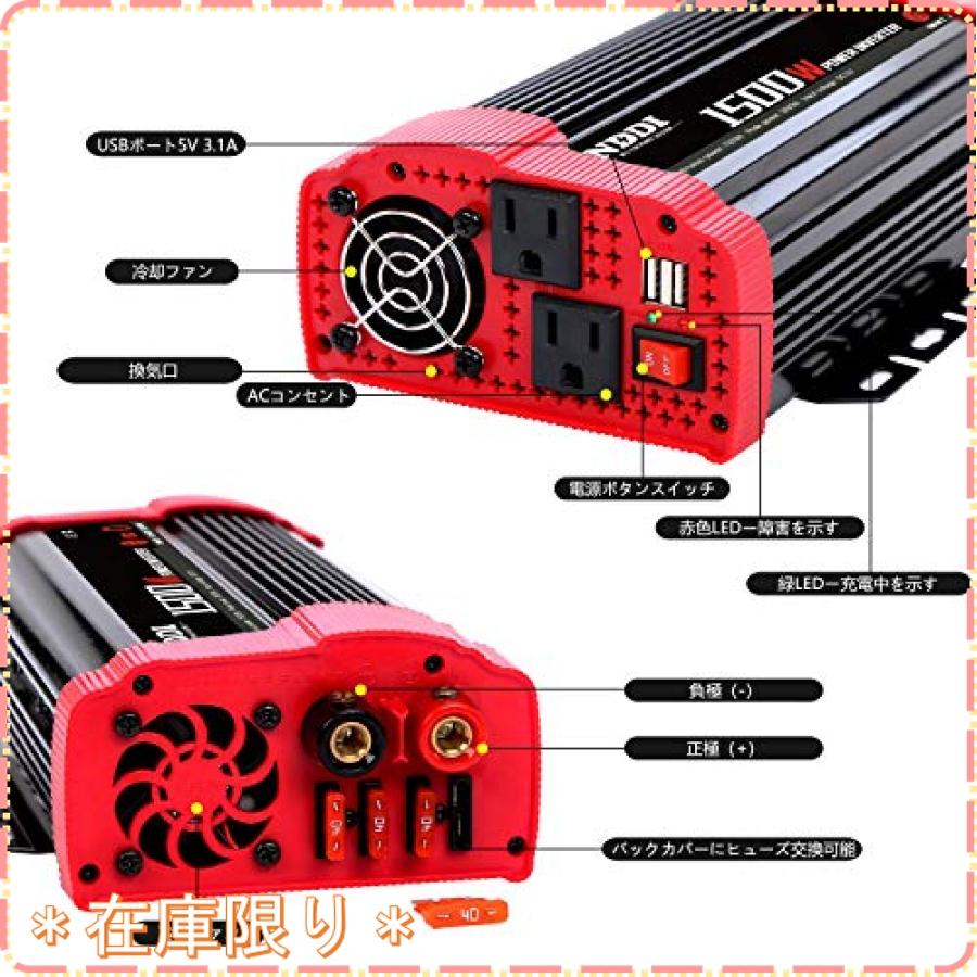 値引 災害時の電力確保に 修正波 電源インバーター バッテリー ポータブル電源 防災 車中泊 アウトドア 定格1500w Dc12v Ac100v 50hz 60hz 最大3000w 最新人気 Zoetalentsolutions Com